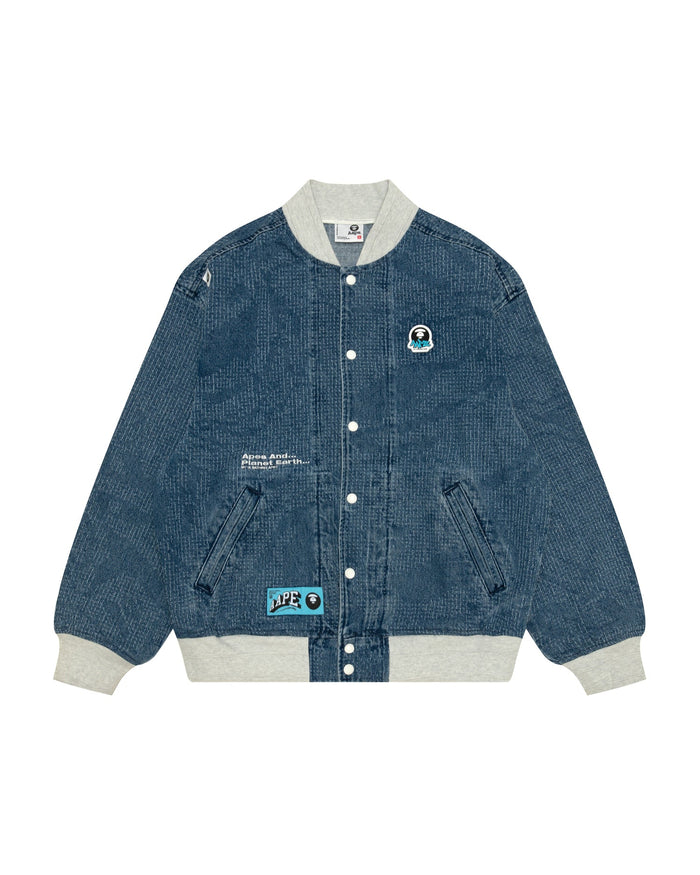 문페이스 로고 데님 야구 재킷