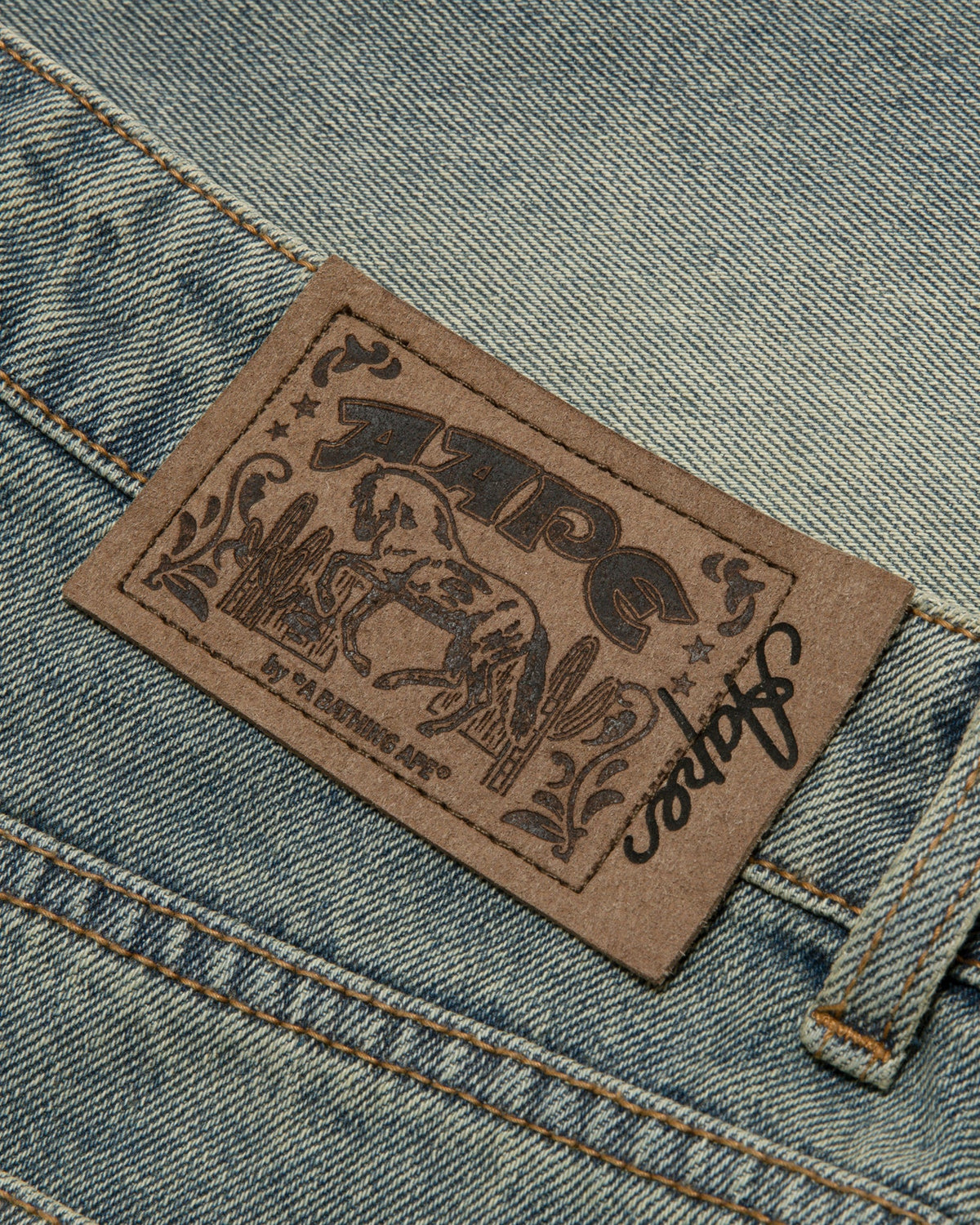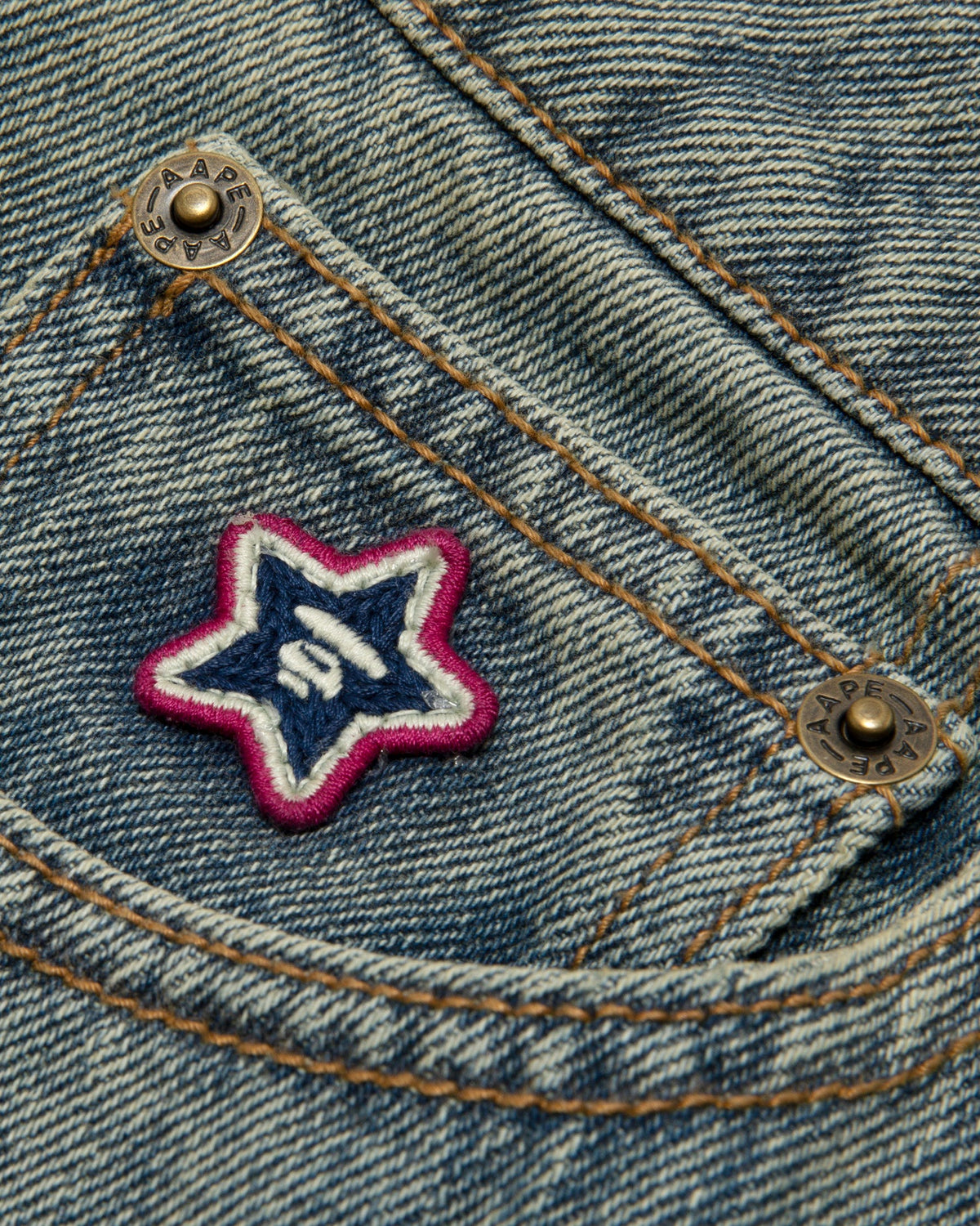 AAPEUNVS 문페이스 로고 자수 데님 반바지
