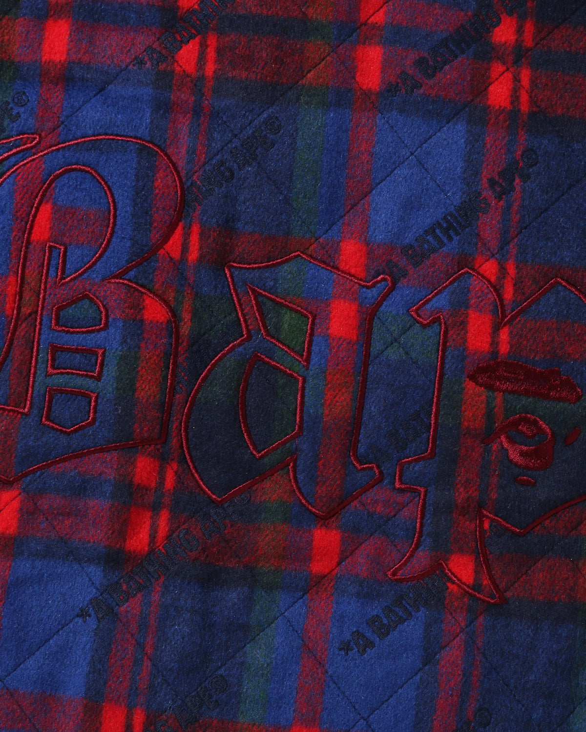 에이베이핑에이프 로고 체크 패턴 패딩 플란넬 셔츠 재킷