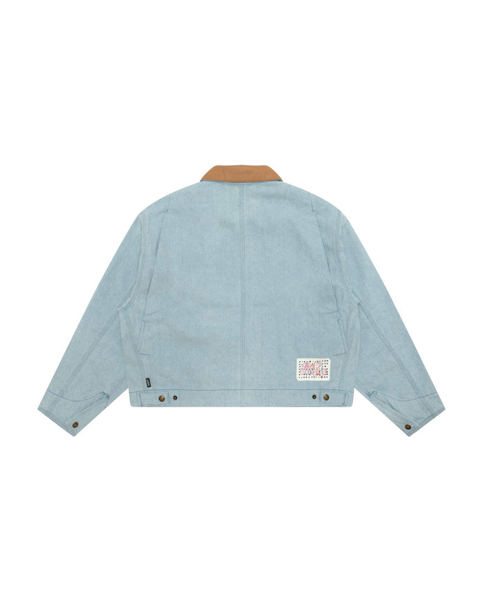 Moonface logo zip-up denim jacket