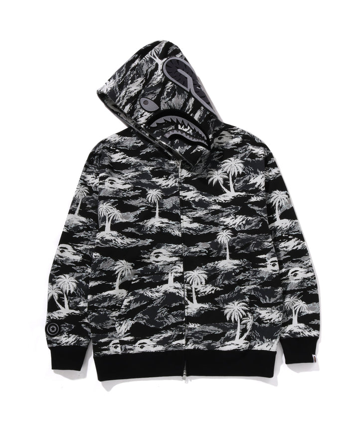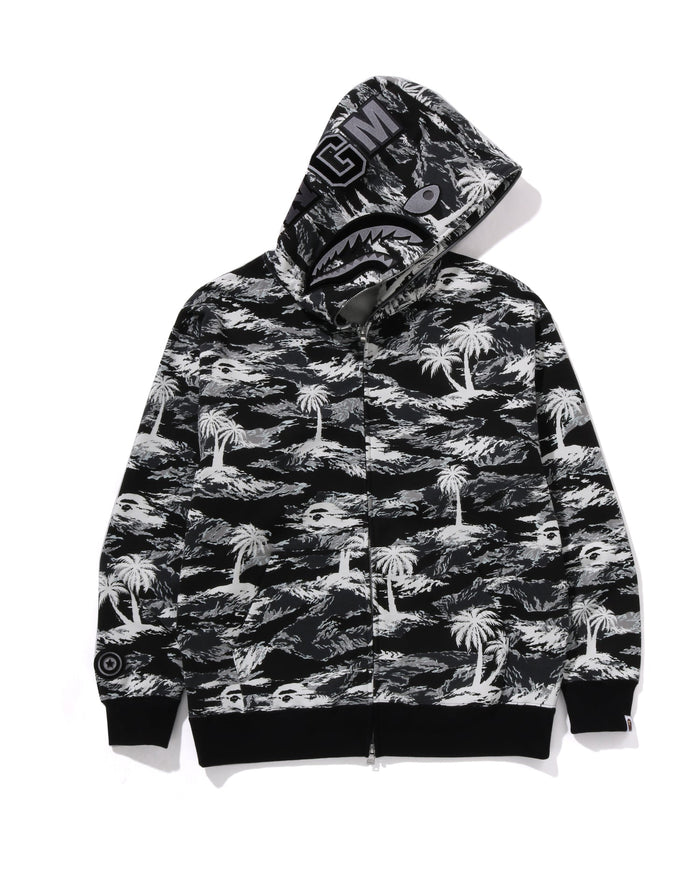 Palm Tree Camo Relaxed Fit Shark Full Zip Hoodie