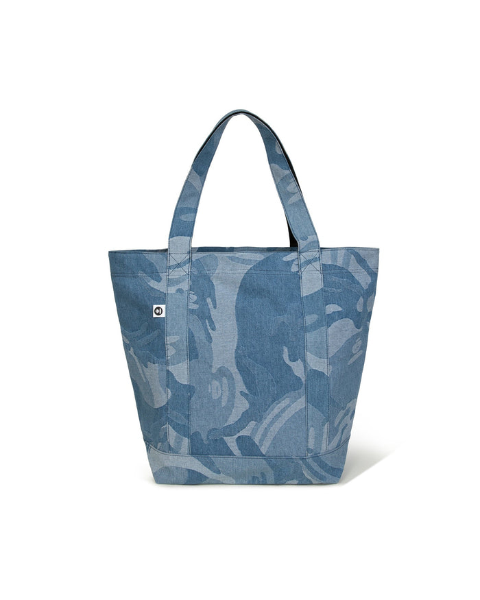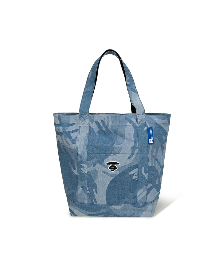 Moonface embroidered camo denim tote
