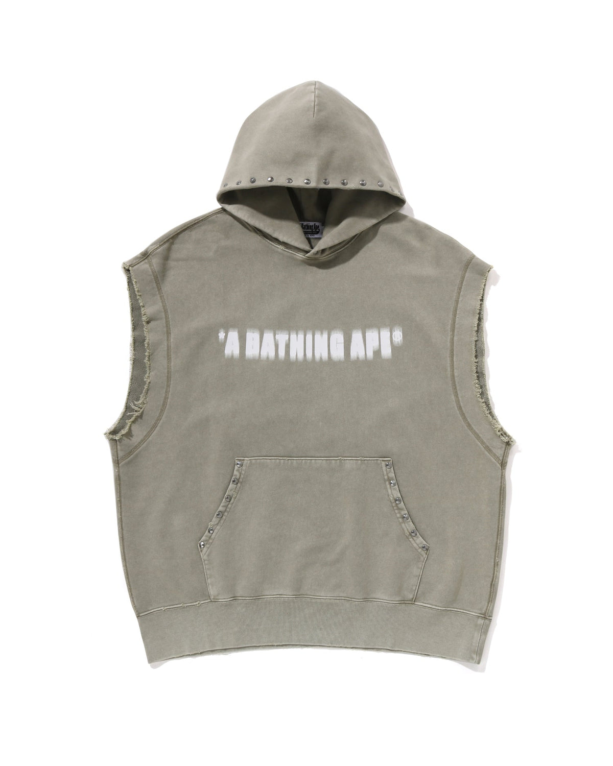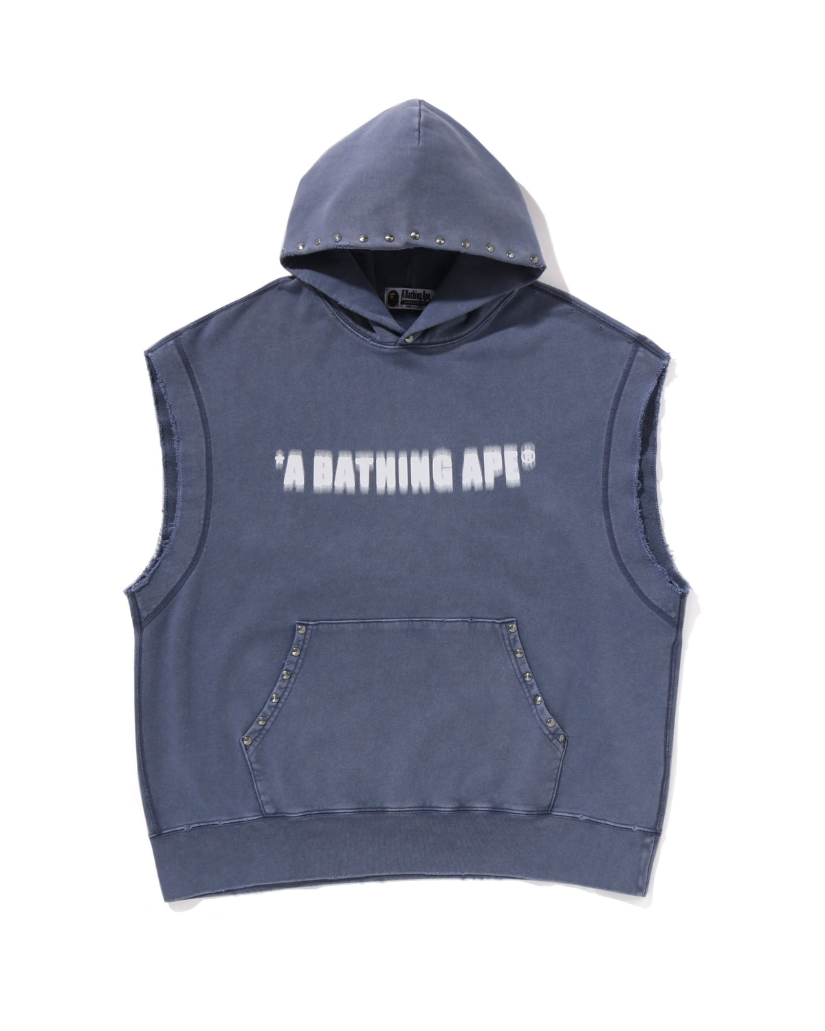 Studded Garment Dye Logo Sleeveless Pullover Hoodie